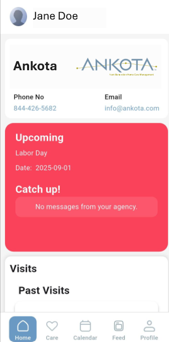 The Ankota Family App is your dedicated partner in managing your loved one's home services, providing transparency, engagement, and peace of mind through its intuitive design and comprehensive features.