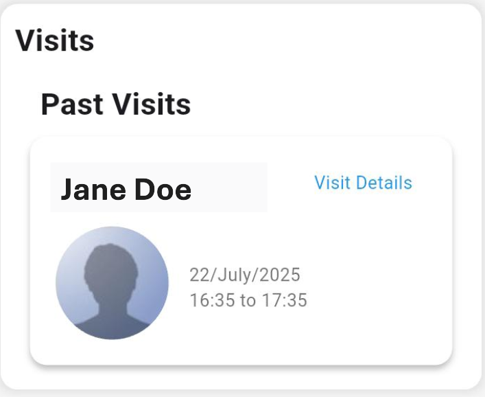 Visit Summary: For each visit, you'll see key details at a glance, including the caregiver's name and the scheduled time.