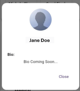 In cases where a service provider's biography is not yet available in the system, a "Bio Coming Soon" message will be displayed.