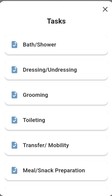 Task Status: For each task, you'll see its completion status, such as "Complete," "Not Needed Today," or "Refused by Client." This offers transparency on the delivery of the care plan.