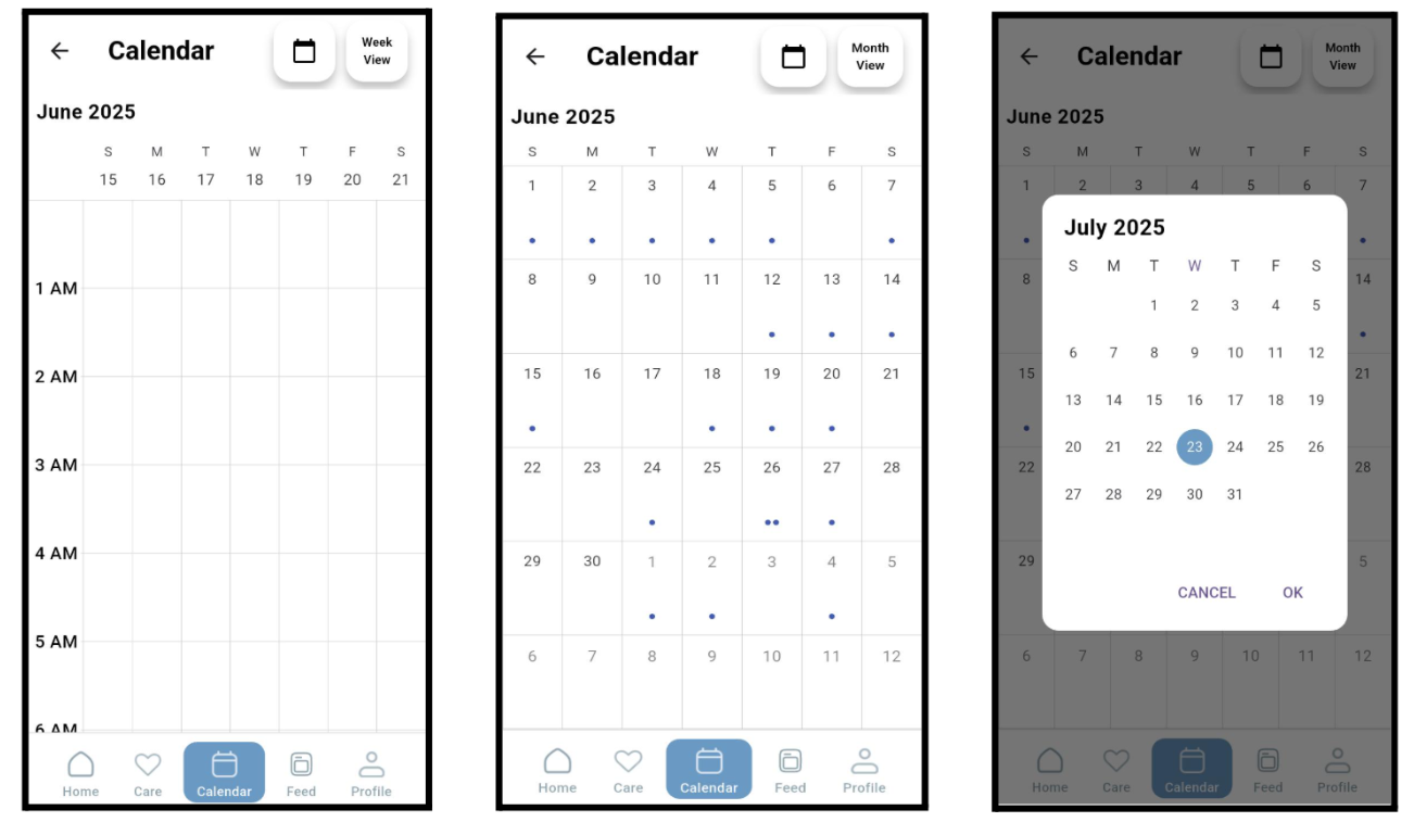 The Calendar feature offers a clear and organized view of all scheduled care.