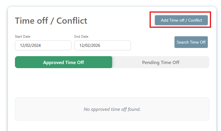 Setting Time Off/Conflict