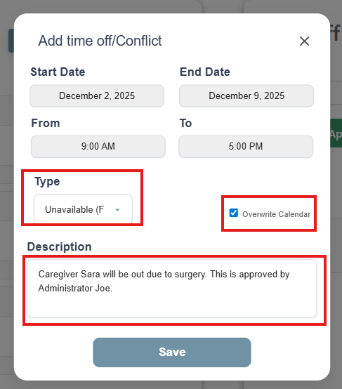 At times, you'll need to make exceptions and mark a caregiver out as unavailable.