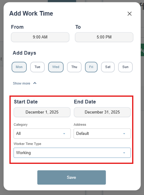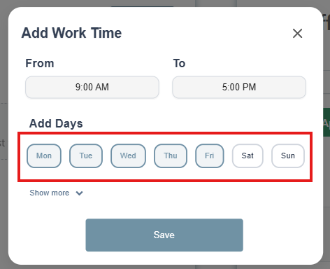 Set your working hours for that day in a typical week or you can select Show More and do by date range then select Save. The following other statuses are also available: