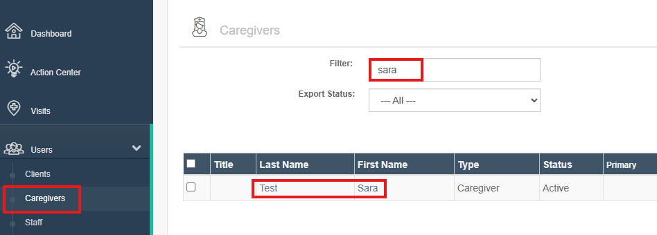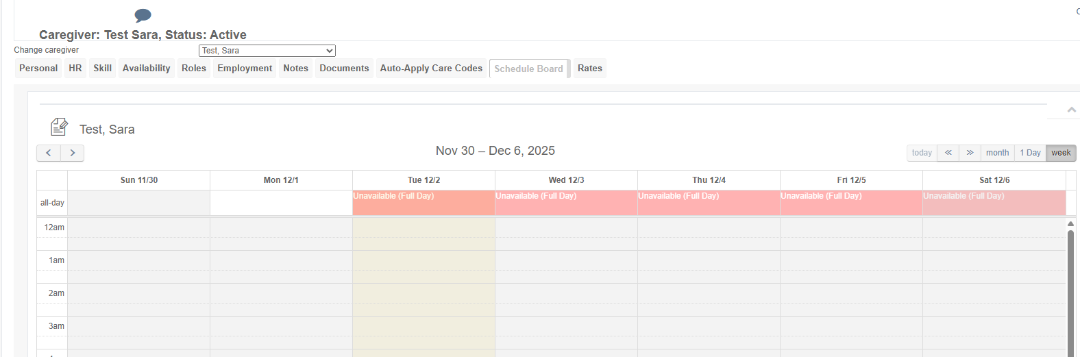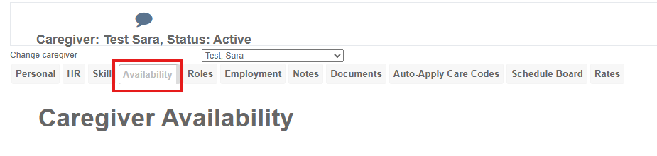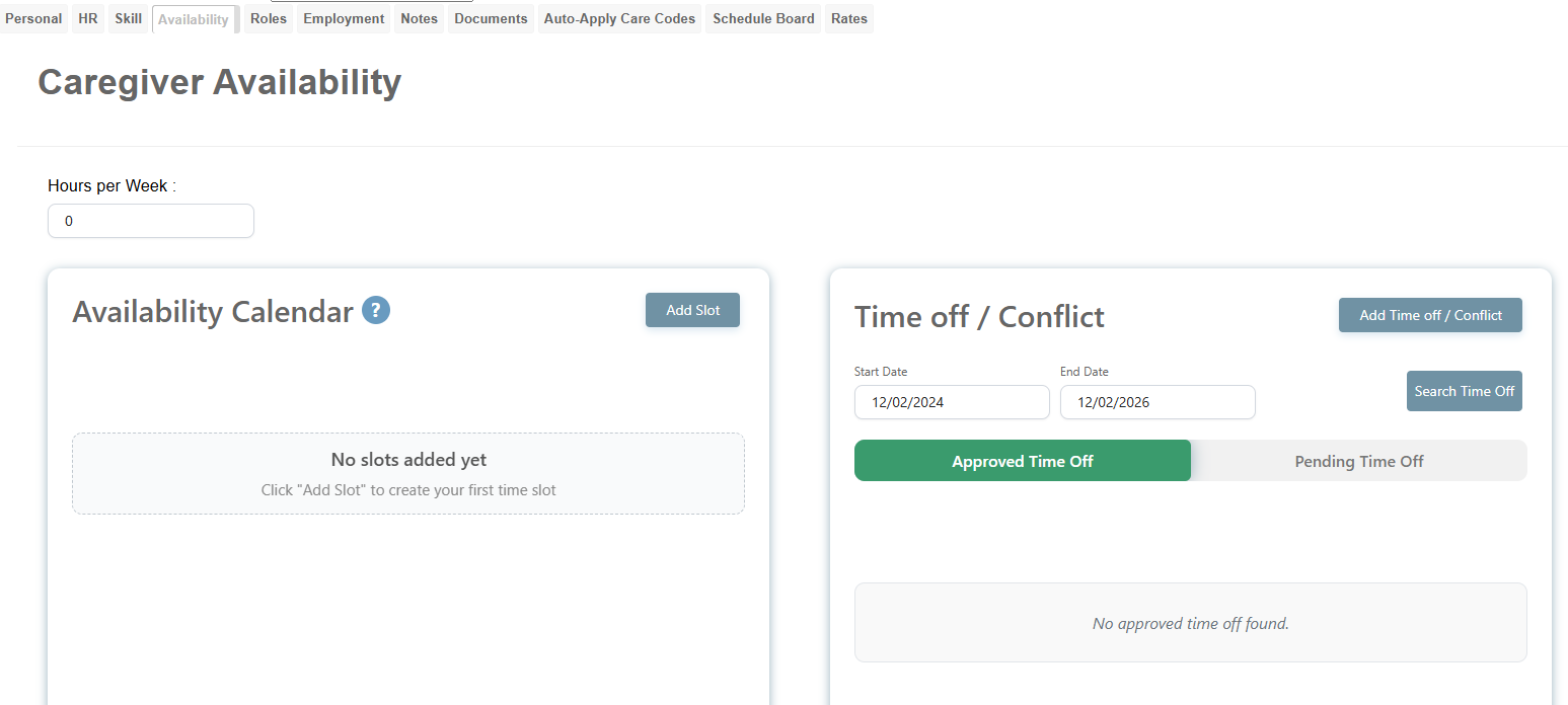 To enter this information, first open the caregiver's profile whose availability and/or time off you wish to enter.