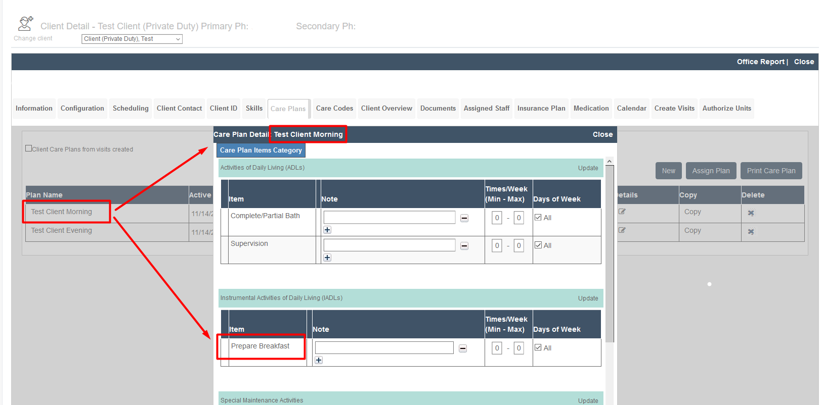 - Clients with multiple care plans (due to morning/evening care plan items) will need to be scheduled using Create Visits.