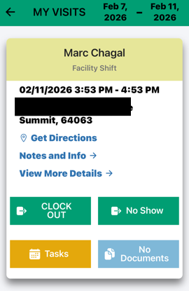 Visit details, including client information and directions to the client's service location, can be viewed by clicking on "View More Details" as well: